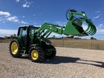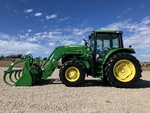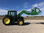 2020 John Deere 6120M, MFWD, 120HP, 2540 hours, 24 speed power quad with LH reverser, John Deere 620R loader, bucket, grapple, joystick with thumb control, 3pt, 3 remotes, 540/1000 pto, excellent rubber, front fenders, mirrors, super nice tractor!