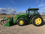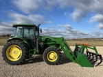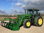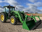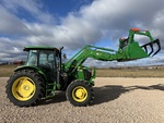 2019 John Deere 6135E MFWD, 135hp, 2930 hours, 24 speed synchro transmission with 2-speed and LH reverser, John Deere H310 SL loader, 8' bucket, 5 tine grapple, joystick, 3pt, 3 remotes, 540/1000 pto, excellent rubber, good tractor!