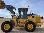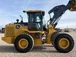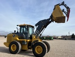2024 Deere 544P wheel loader, only 1395 hours, with HD 5-tine grapple, joystick with 3rd function thumb control, JRB factory quick attach, ride control, dual diff lock, heated seat, rear camera, heated/power mirrors, bottom guards, aux power package, chrome exhaust, level 2 trim package, Deere warranty 825 days or 4000 hours, beautiful, like-new machine with all the options! Ask about our HD Bale spears and pallet forks. Available with bucket only or with bucket and grapple.
