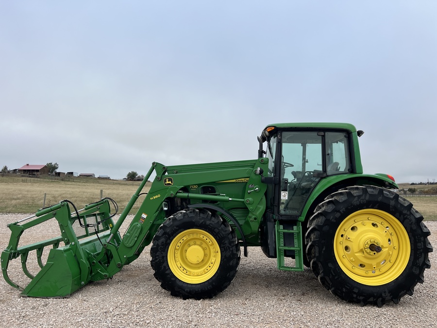 2009 John Deere 7130 Premium, MFWD, 125hp, 8015 hours, 16 speed power quad transmission with LH reverser, John Deere H360 SL loader, 8' bucket, 5 tine grapple, joystick with thumb control, 3pt, 540/1000 pto, 3 remotes. New rear 18.4R42 rims and rubber, new front rubber, good clean tractor.