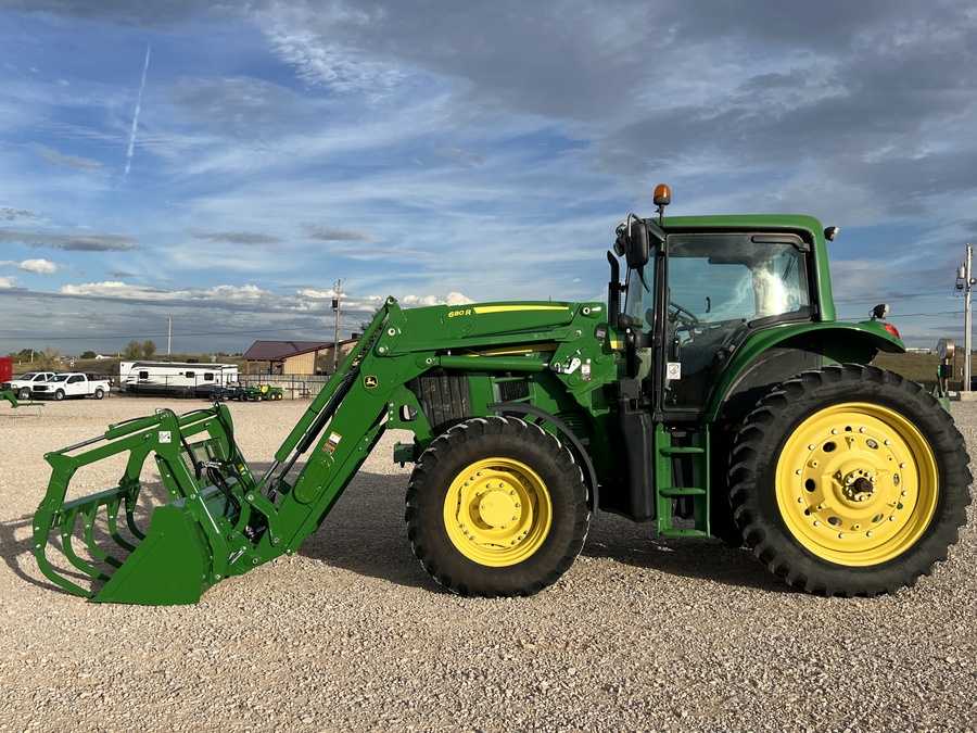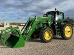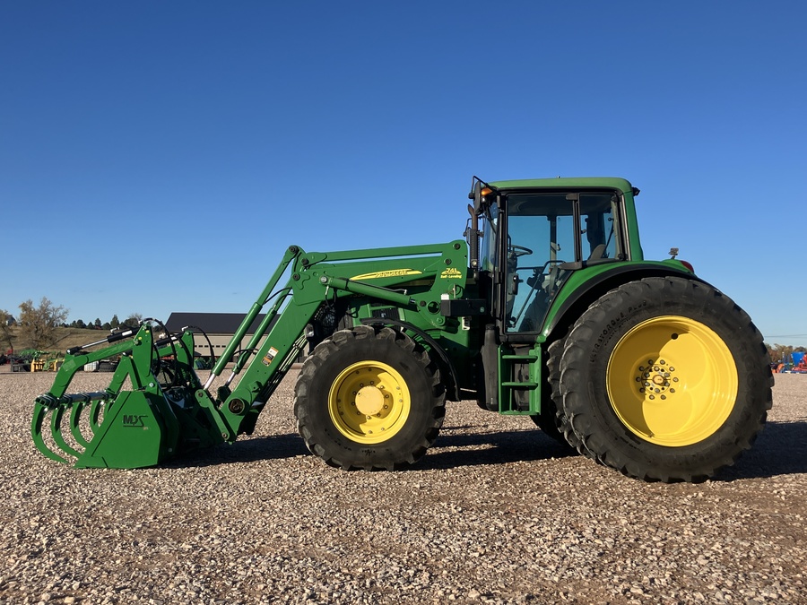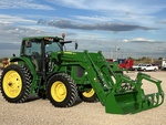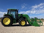 2015 John Deere 6150M, MFWD, 150HP, 6685 hours, John Deere 640R loader, bucket, grapple, 16 speed power quad with LH reverser, 540/1000 pto, 3pt, 3 remotes, new rubber all around.