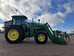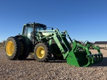 2010 John Deere 7230 MFWD, 135HP, 6465 hours, 16 speed power quad with LH reverser, John Deere H340 loader, 8' bucket, 5 tine grapple, joystick with thumb control, 3 hydraulic remotes, 540/1000 pto, 3pt, good front rubber, new rear rubber, clean tractor.
