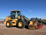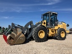 2013 Deere 544K wheel loader, 14,600 hours, heavy duty 5-tine grapple, joystick, aftermarket 3rd function, factory hydraulic quick attach, ride control, good rubber, runs and operates excellent.