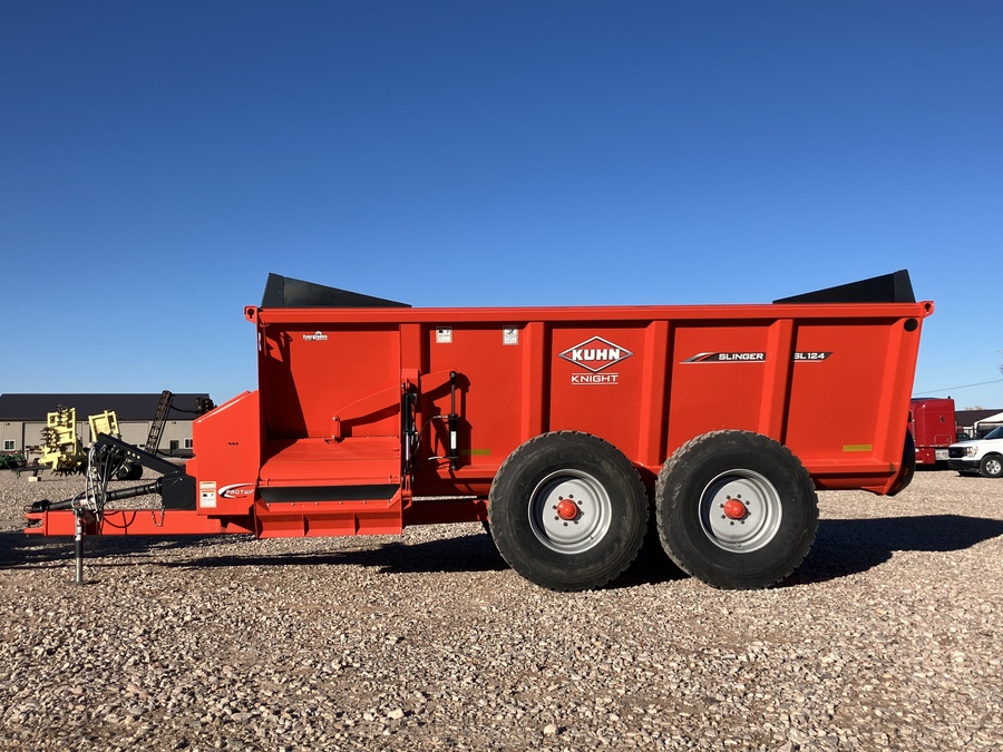 2024 Kuhn SL124T Pro-Twin, side discharge spreader, pull type, tandem axle, front and back splash guards, new machine, never been used, full manufacturer warranty.