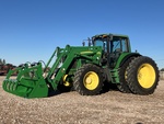 2007 John Deere 7730 MFWD, 4875 hours, 190hp, 16 speed power quad w/LH reverser, John Deere 746 SL loader, 9' bucket, 5 tine grapple, joystick with thumb control 3rd function, 3pt, 540/1000 pto, 2 remotes, good rubber, nice midwest tractor!