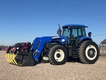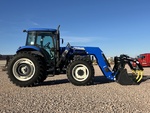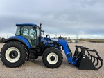2010 New Holland T6050, MFWD, 125hp, 3155 hours, 16 speed partial power shift with LH reverser, New Holland 840TL loader, bucket, grapple, joystick, 3pt 540/1000 pto, 2 remotes, 18.4R38 rear rubber, nice, clean tractor.