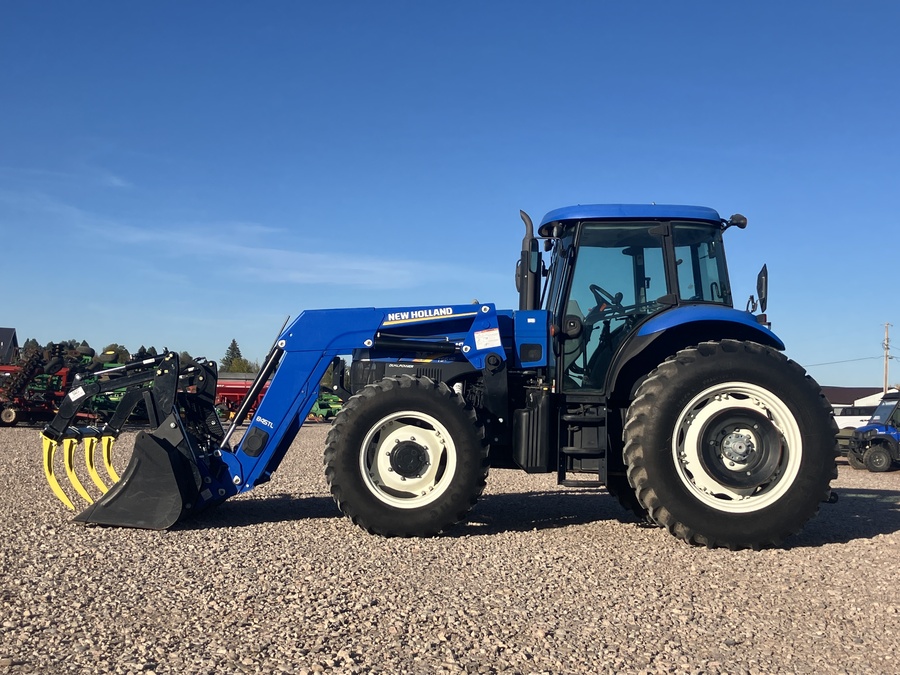 2014 New Holland TS6.140 MFWD, 140hp, 1010 hours, Dual-Power, synchro w/LH reverser, New Holland 845TL loader, bucket, grapple, joystick, 3pt, 540/1000 pto, 2 remotes, good rubber, nice, low hour trade-in.