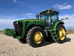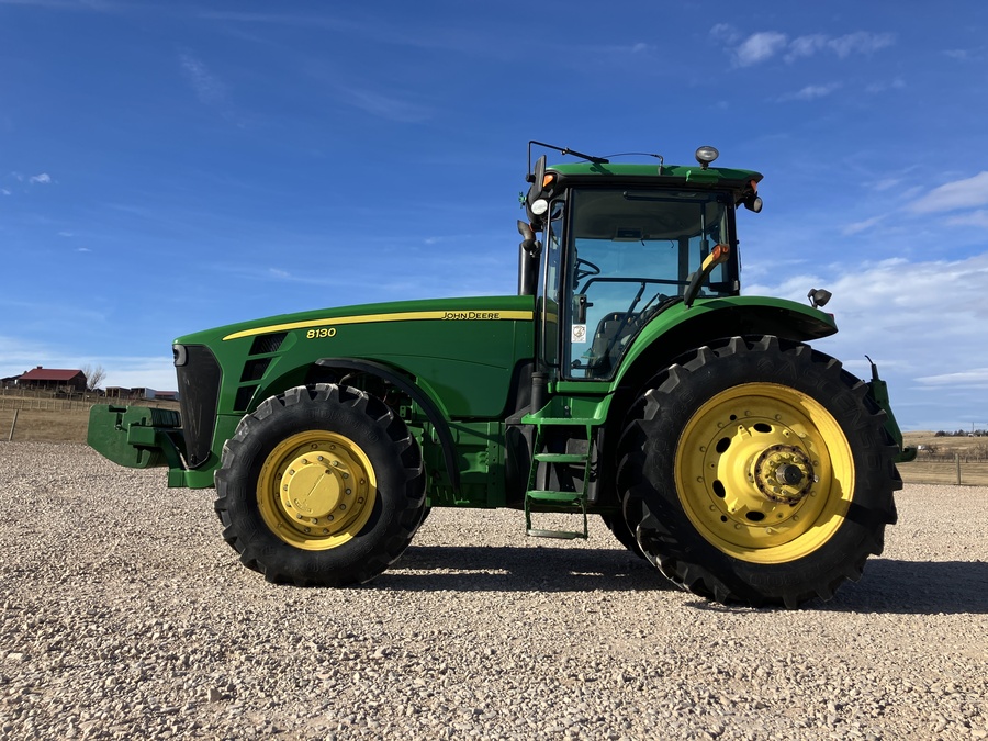 2007 John Deere 8130, MFWD, 225hp, 6925 hours, 16 speed power shift transmission, 1000 pto, 3pt w/quick hitch, duals, front fenders, mirrors, front weights, auto steer valve, new rubber all around, duals, very nice, farmer owned, midwest tractor, kept inside the shed. Last of the good pre-emissions tractors.