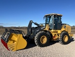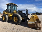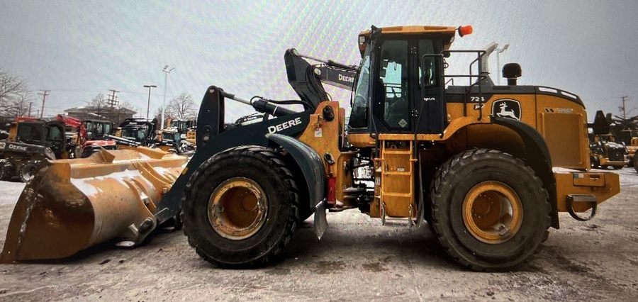2023 Deere 724P High-Lift wheel loader, 5635 hours, Z-bar, diff lock, ride control, 4.75 yard GP bucket, level 2 trim, level 4 performance, heated seat, heated/powered mirrors, joystick controls, debris package, bottom guards, winter package, wide foot metric radial tires, 200 days warranty or 6k hours, extremely hard-to-find high lift 724P, very clean machine.