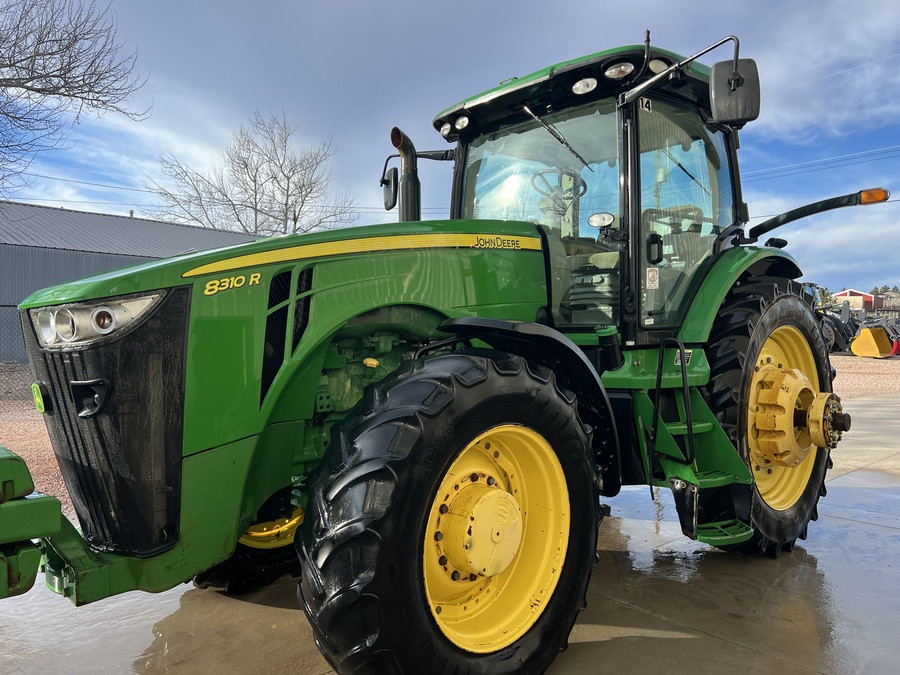 2013 John Deere 8310R, MFWD, 310hp, 9320 hours, 16 speed power shift, 1500 front end, dual hubs, good rear rubber, new front rubber, tractor runs, drives, and shifts as it should but it does have blow-by and oil had non-magnetic shavings. Sells strictly AS-IS.