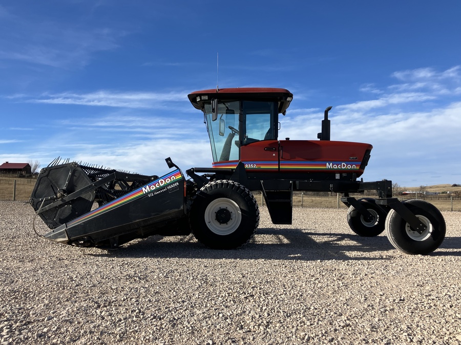 2002 MacDon 9352 windrower with MacDon 972 16' harvest draper head, 2328/1267 hours, cab, air, heat, exceptionally nice, well kept machine.