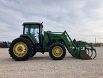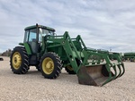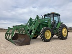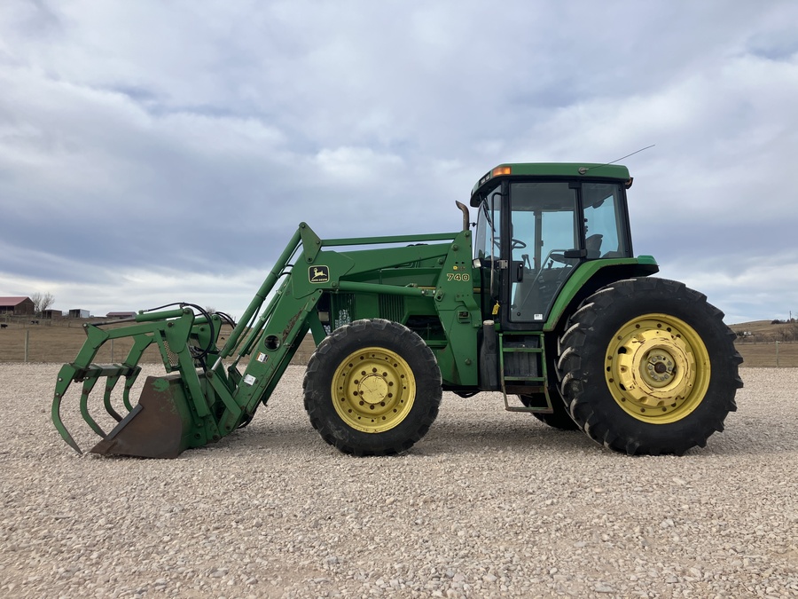 1994 John Deere 7400, MFWD, 115hp, PQ transmission, John Deere 740 SL loader, bucket, grapple, joystick, 3pt, 540/1000 pto, 4 remotes, new rubber all around, tractor checks out good and sound.