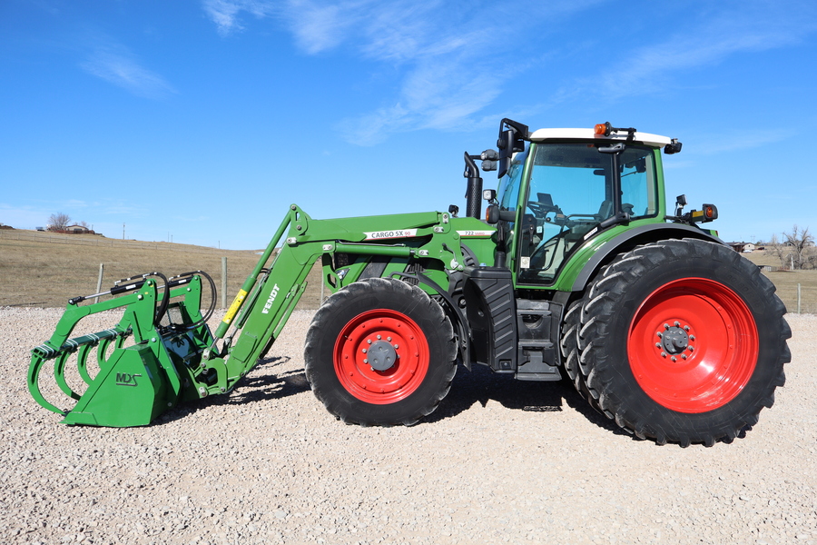 2022 Fendt 722 Vario Profi Plus, MFWD, 220hp, 860 hours, 31mph CVT transmission, Fendt 5x90 SL loader with scales, new 9' MDS bucket, new MDS 5-tine grapple, electric joystick with 3rd function, Gen 6 Auto-Steer antenna, front suspension, air ride cab suspension, air park, exhaust brake, evolution seat, buddy seat, 540/1000 pto, 5 remotes, 3pt, 480/80R46 rear rubber with duals, 300 kg rear wheel weights, this tractor is loaded up and as beautiful as they get!