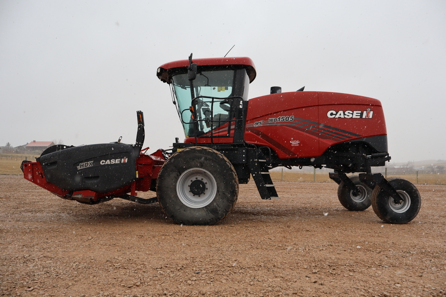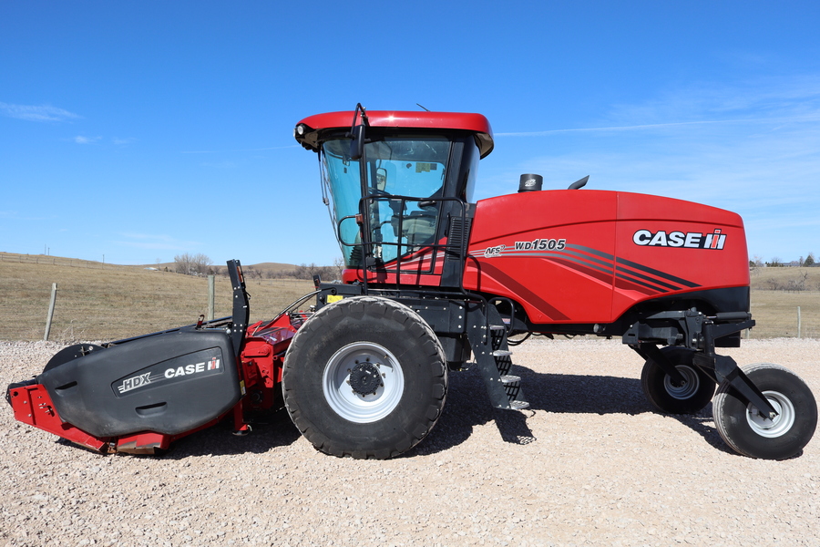 2024 Case IH WD1505 windrower with CIH HDX142 14' sickle header, 1605 hours, cab, air, heat, AFS Pro 700 monitor, cab suspension, rubber conditioners, good guards and sickles, Premier warranty to May 10, 2026. Nice machine.