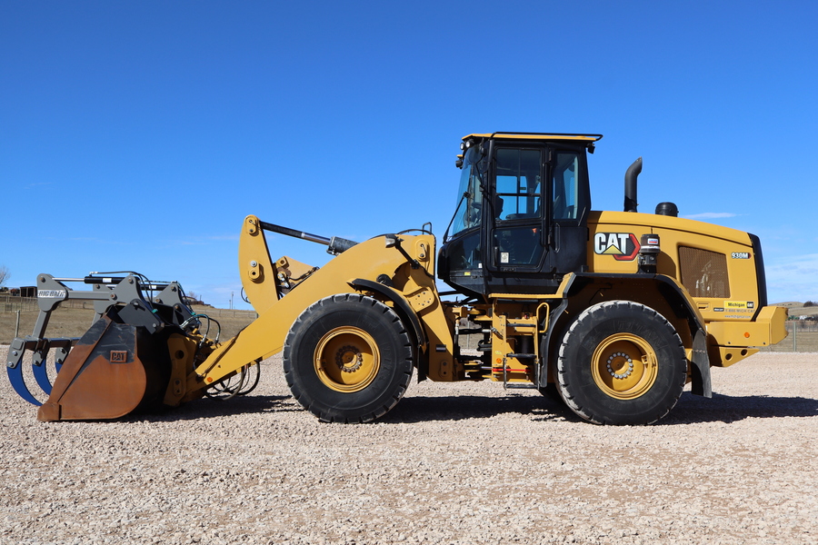 2023 Caterpillar 930M HIGH-LIFT wheel loader, 5699 hours, with Big Baer Ultra HD 5-tine grapple, joystick with 3rd function thumb control, Cat Fusion hydraulic quick attach, ride control, front and rear fenders, new traction style rubber, very nice! $155,000 without grapple. Bale forks and pallet forks available.