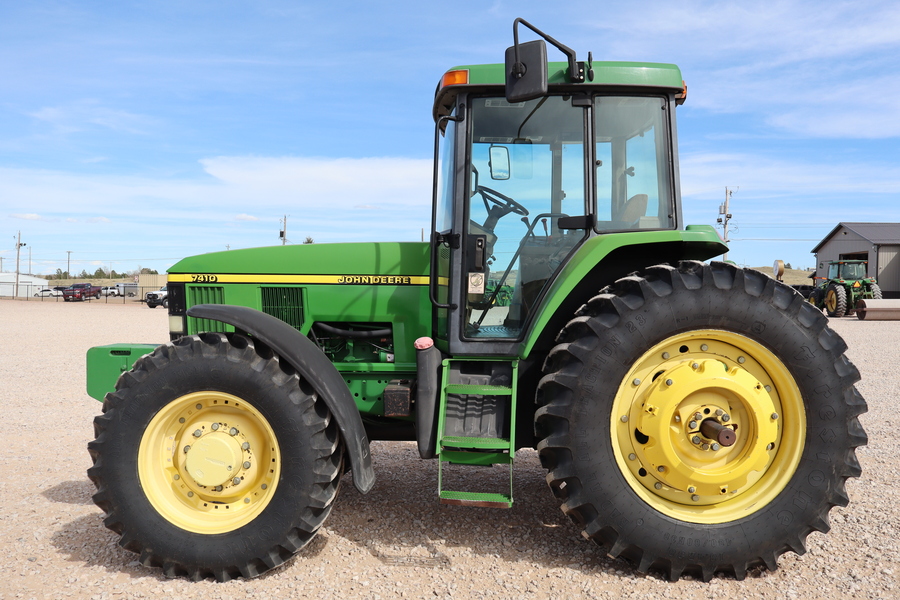 1997 John Deere 7410, MFWD, 135hp, 6045 original hours, 16 speed power quad with RH 1-4 reverser, 540/1000 pto, 3pt, 2 remotes, rear weights, front fenders, front weights, mirrors, new cab interior kit, pre-emissions, new Firestone rubber all around, comes straight off the farm, one of the good ones and hard to find! Loader w/install available for extra. Very nice!