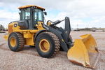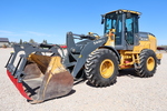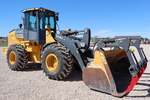 2022 Deere 444P wheel loader, 5150 hours, Big Baer ultra HD 5-tine grapple (SD USA made) joystick with 3rd function thumb control, JRB 416 hydraulic quick attach, cab, air, heat, ride control, very nice!