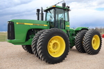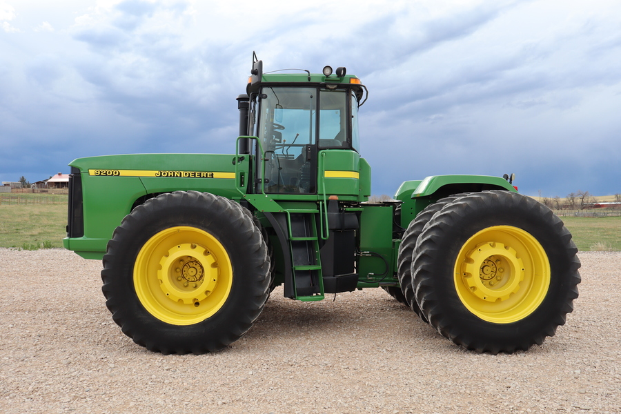 1997 John Deere 9200 4WD articulating tractor, 6670 hours, quad range partial power shift, front and rear weights, bareback, 4 remotes, excellent 520/84R42 rubber all around, this is one nice tractor that comes straight off a Nebraska farm and was kept inside the shed! Hard to find! Pre-emissions.