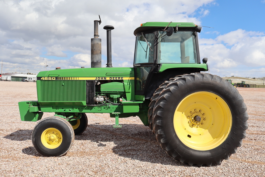 1991 John Deere 4455, 2wd, 155hp, 11,967 hours, 15 speed power shift transmission, cab, air, heat, 3pt, 540/1000 pto, 3 remotes, duals, front fenders, good rubber, this is a 1-owner tractor, overhauled by JD dealer at 7300 hrs, very nice and well cared for.